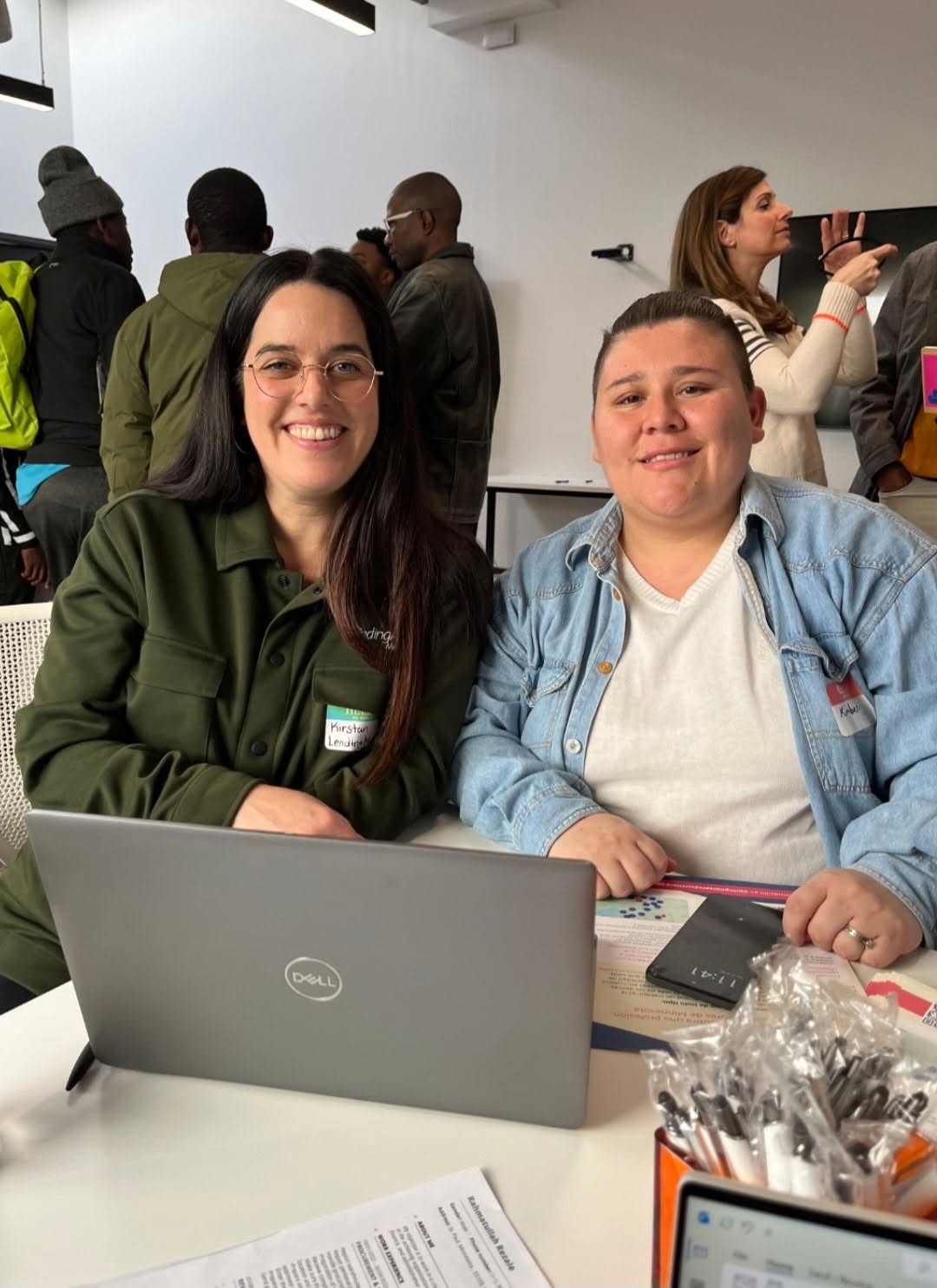 Helping navigate Caring Careers Start Here in Spanish with an Alight job fair participant.